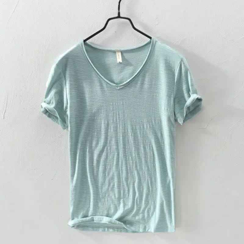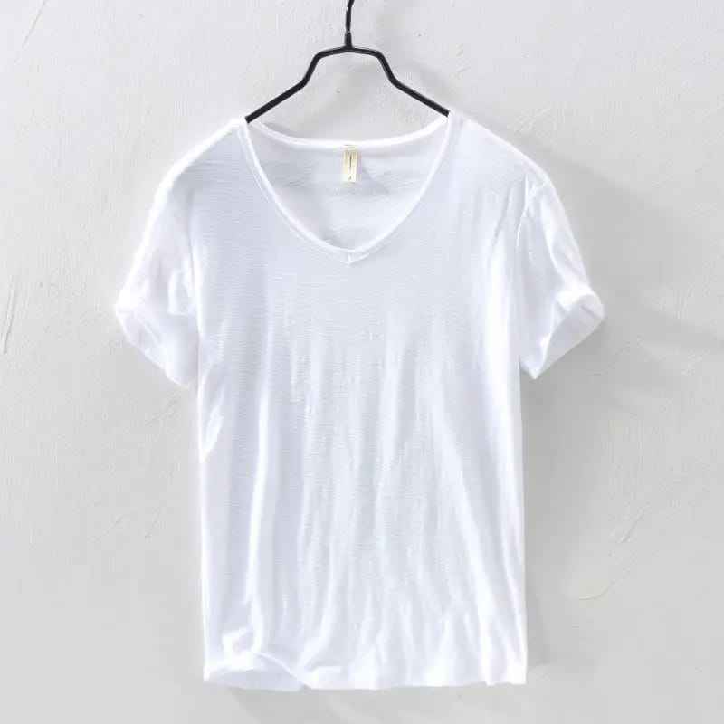 100% Cotton V-Neck T-Shirt for Men OEM Custom Plus Size Casual Short Sleeve Jersey Breathable Embroidered Solid Pattern Knitted
