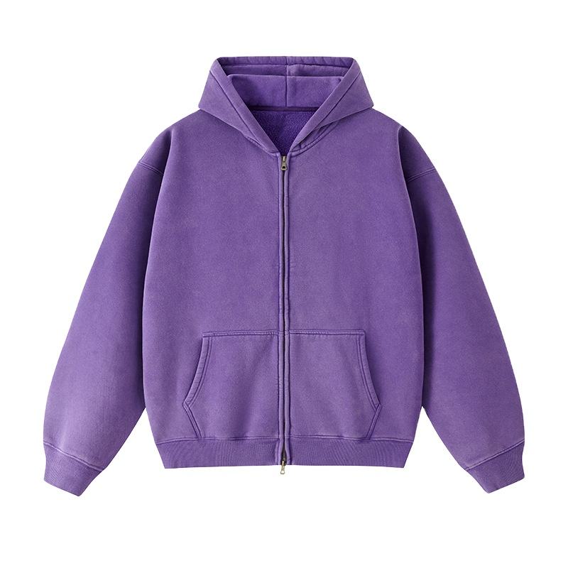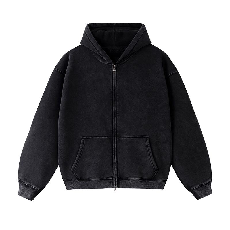 100% Cotton Vintage Velour Oversized Drop Shoulder Stringless Blank Thick Half Zip Men's Hoodie