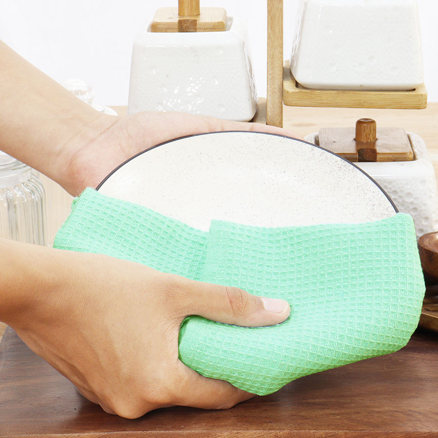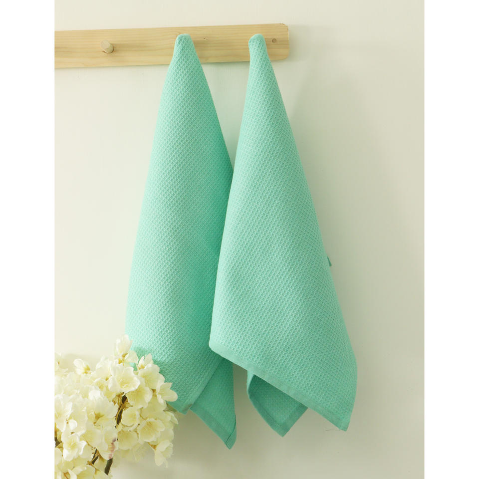 100% Cotton Waffle Weave Kitchen Towel 15 X 25 Inches Turquoise Square Dry Dish Cloth With Hanging Loop Ultra Soft