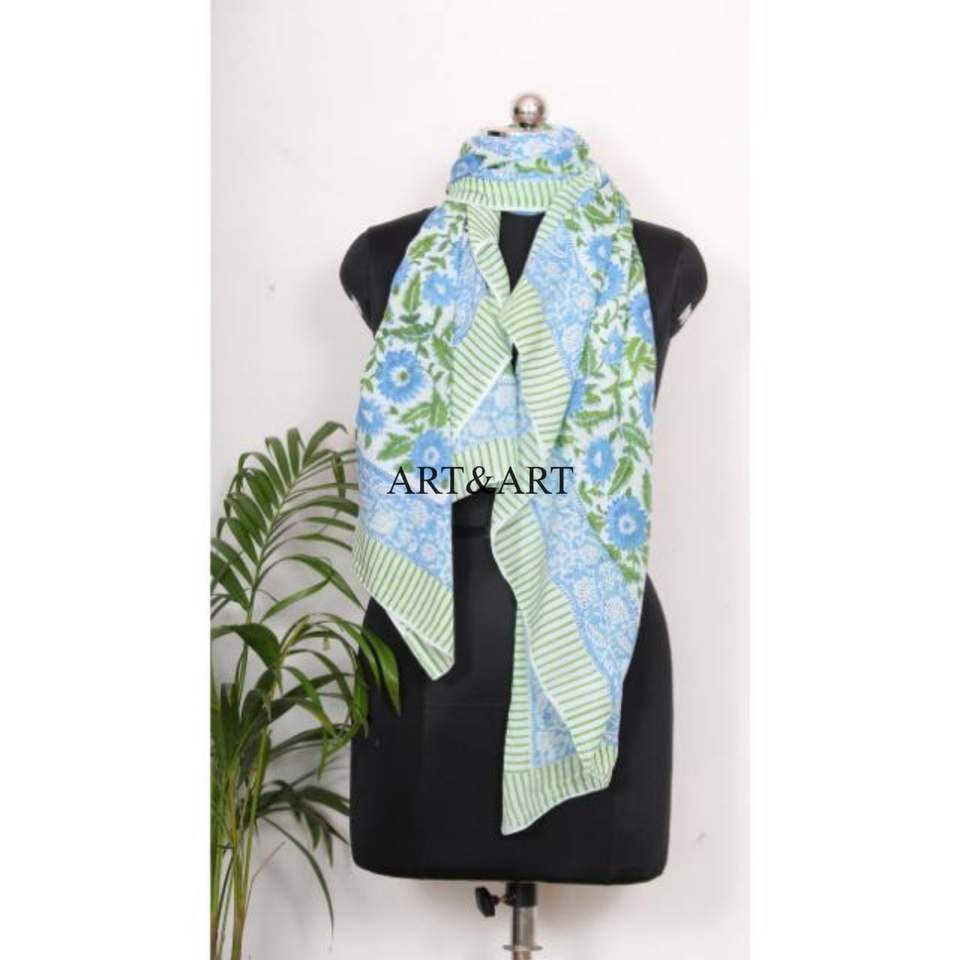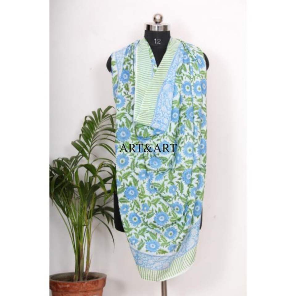 100% Cotton Women Beach Wear Floral Hand Block Print Eco-Friendly Breathable Pareo/Sarong Comfortable Light Weight Scarf