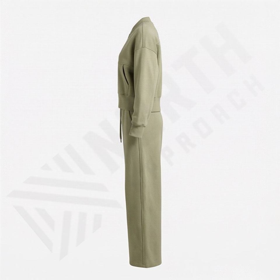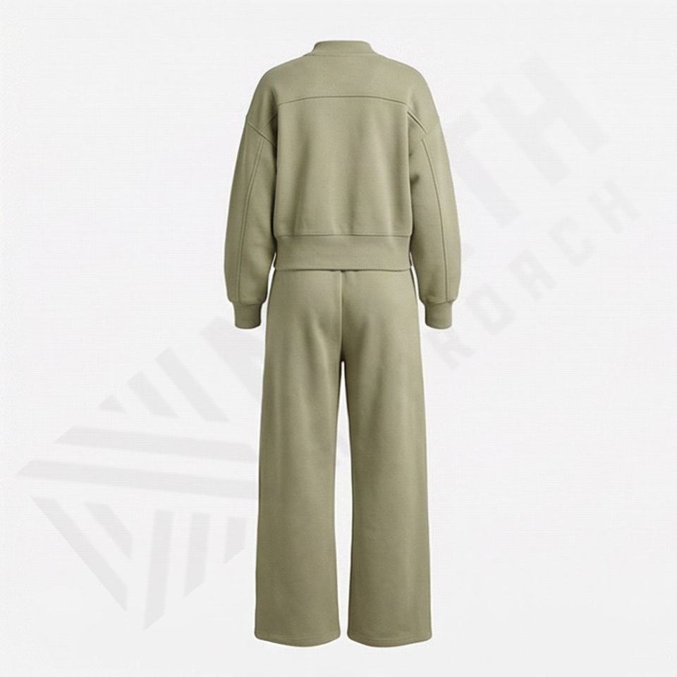 100% Cotton Women Midweight Fleece 2-Piece Vintage Hooded Sweatpants & Jacket Set Fall Winter Jogger Tracksuit