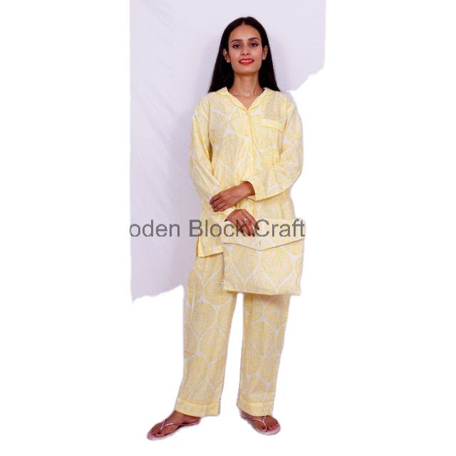 100% Cotton Women's Vintage Button Pajamas Set V-Neck Long Sleeves Floral Print Comfortable All Season Party Wear
