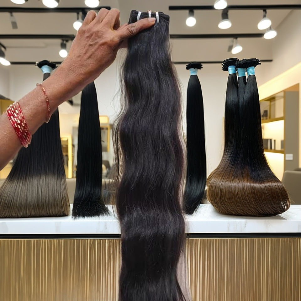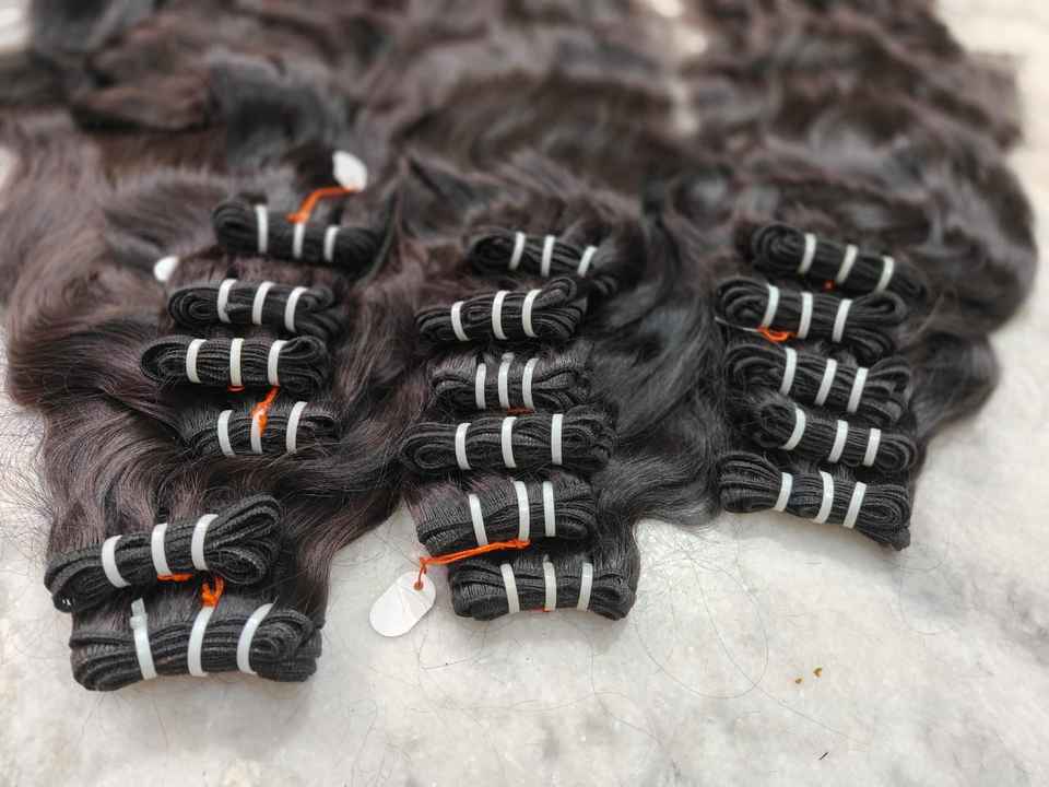 100% Cuticle alaigned indian Raw hair weaving from india.Machine double weft virgin natural wavy single donor hair extension