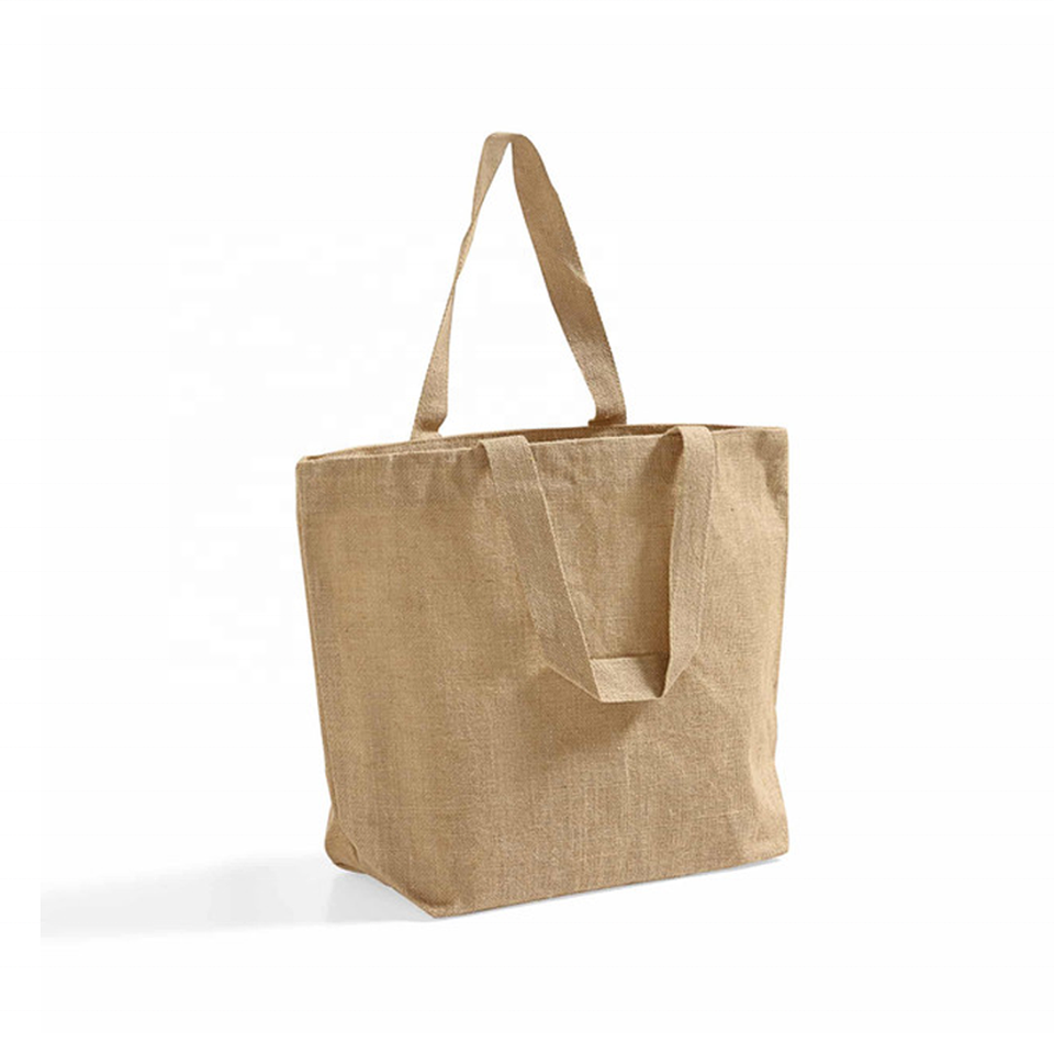 100% Eco-Friendly Customized Jute Shopping Tote Bag with Webbing Tape Handle Without Printing