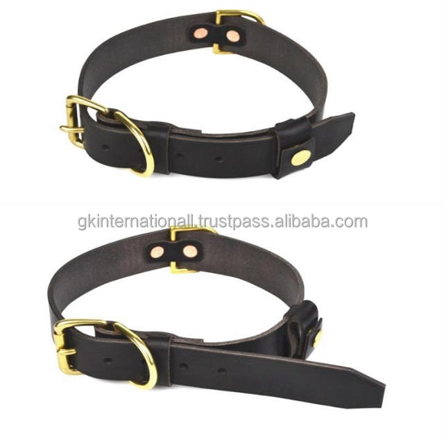 100% Full Grain Vegetable Tanned Cowhide Leather Dog Collar for Large or Medium Pets with Premium Brass Buckle and D Ring