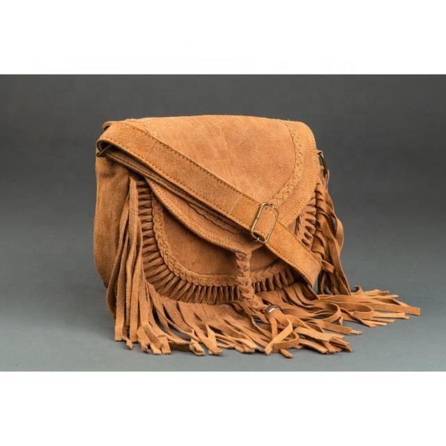 100% Genuine Boho Fringe Suede Leather Handbag Vintage Summer Hippie Tassel Tan Western Crossbody Purse Zip Closure Handmade