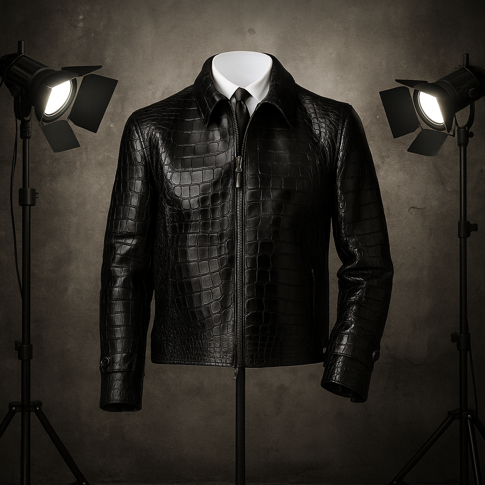 100% Genuine Cowhide Men's Vintage Style Leather Jacket New Stylish for Crocodile Skin Embossed Zipper Autumn Season Canvas Coat