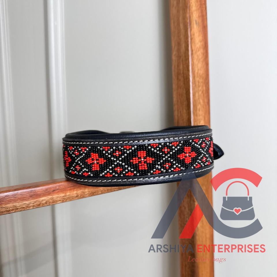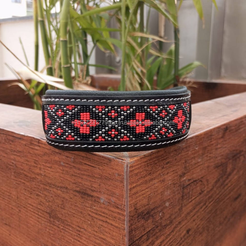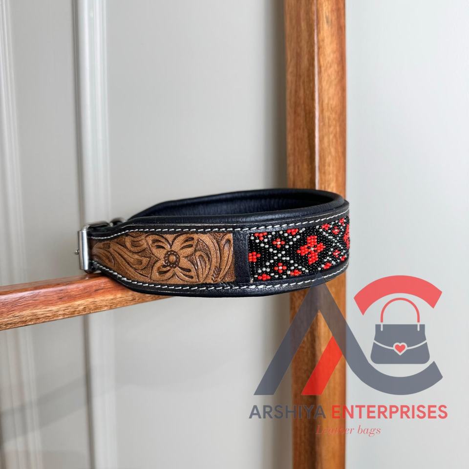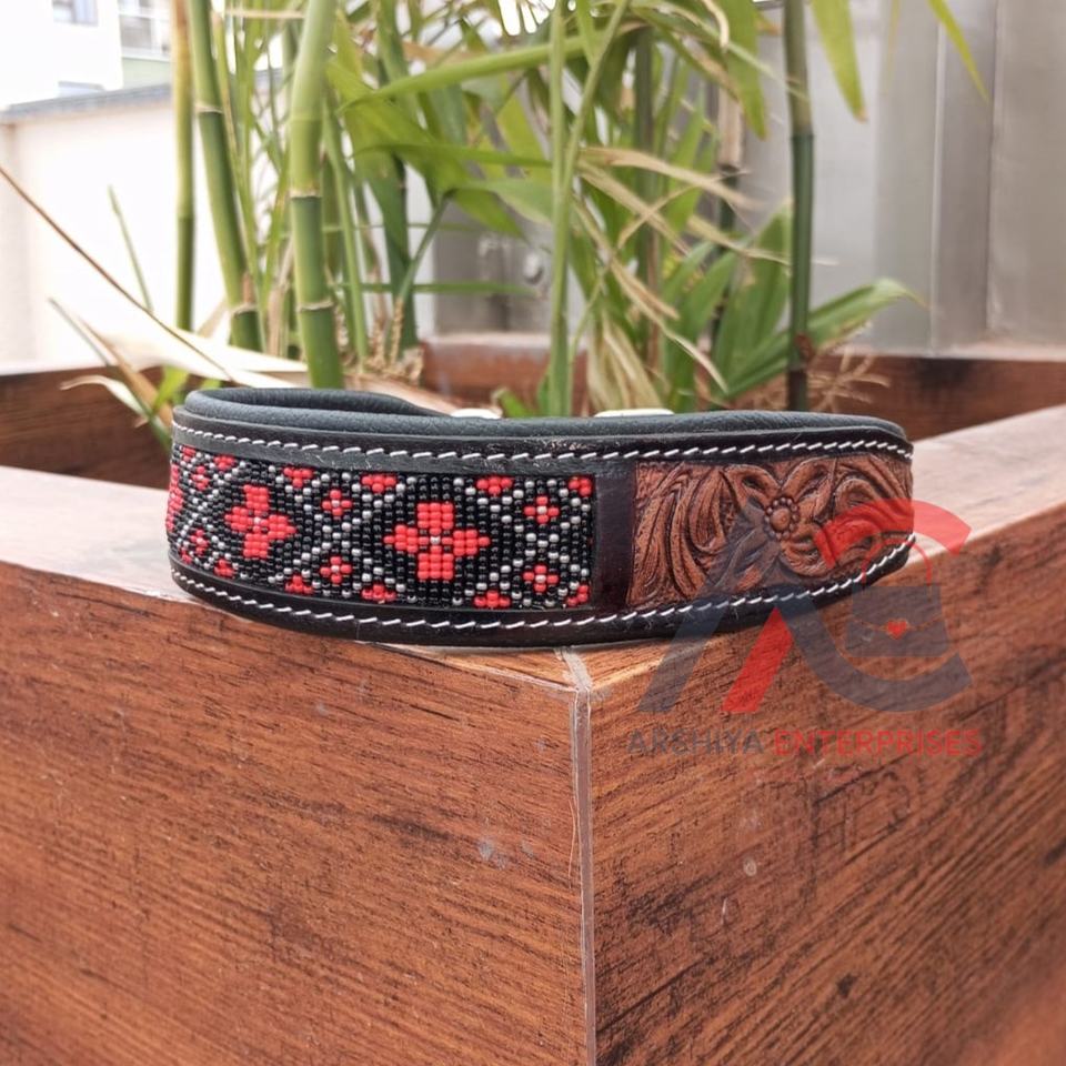 100% Genuine Leather Dog Puppy Collar Personalized Western Hand Tooled Beaded Engraved Padded Rust Proof Stainless Pet Collars