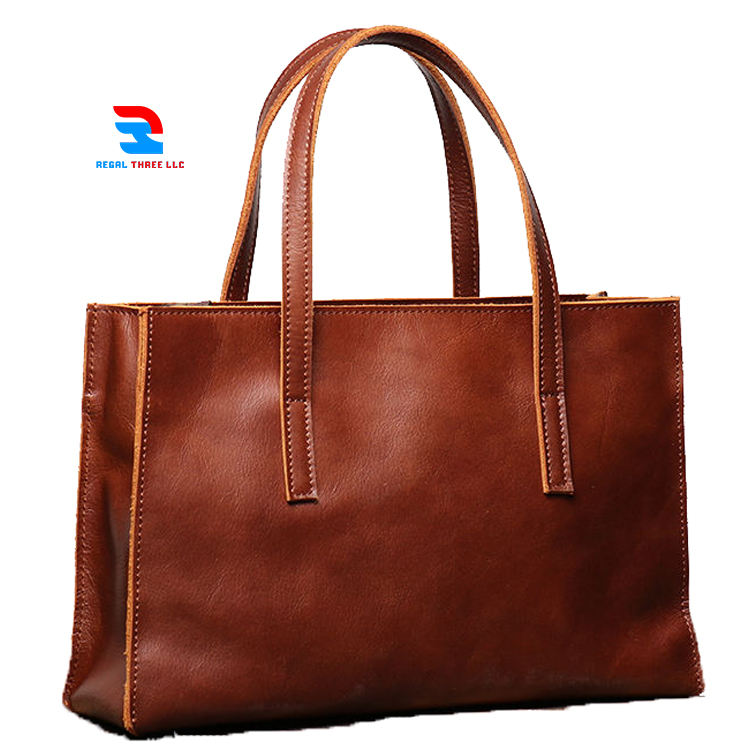 100% Genuine Leather Ladies Outdoor Shopping Tote Shoulder Bags | Wholesale Women's High Quality Single Zipper Handbags