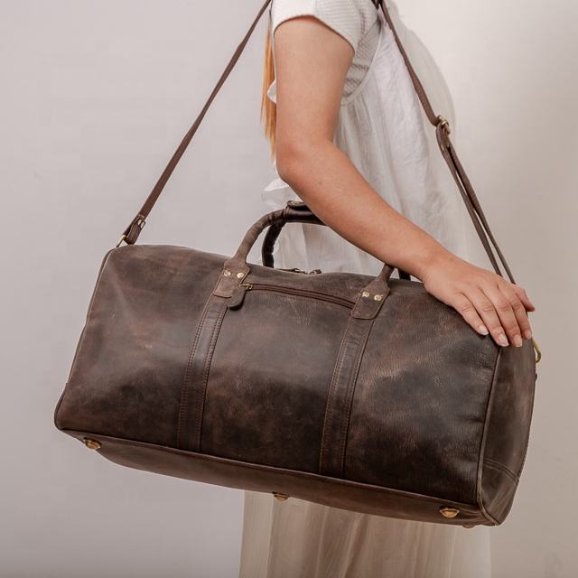 100% Genuine Leather Luggage Duffle Bags Eco-Friendly Large Capacity Durable Sports Weekender Overnight Camping Carry-On Storage