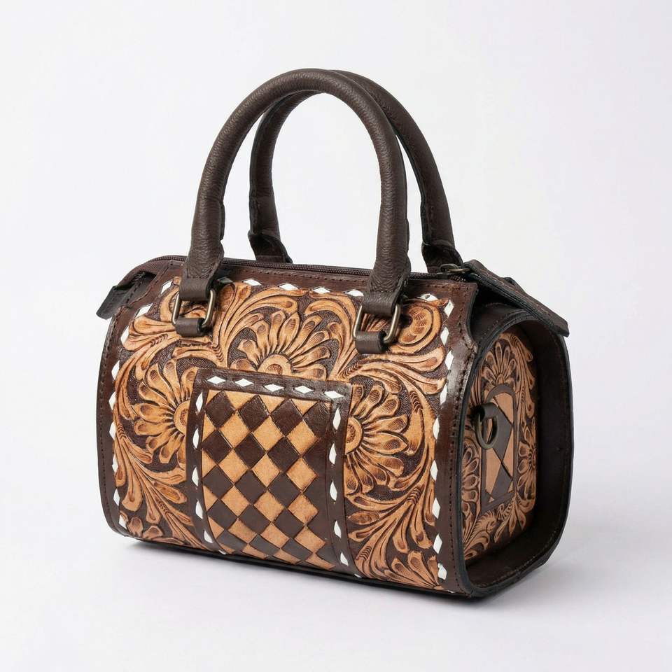 100% Genuine Leather Luxury Travel Mini Speedy Duffle Bag High Quality Weekender Vintage Tooled Florals Carved Checkered Pattern