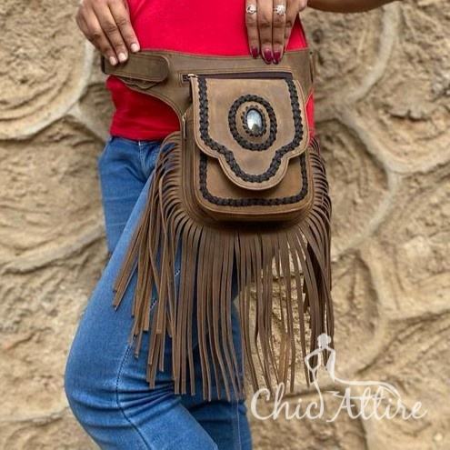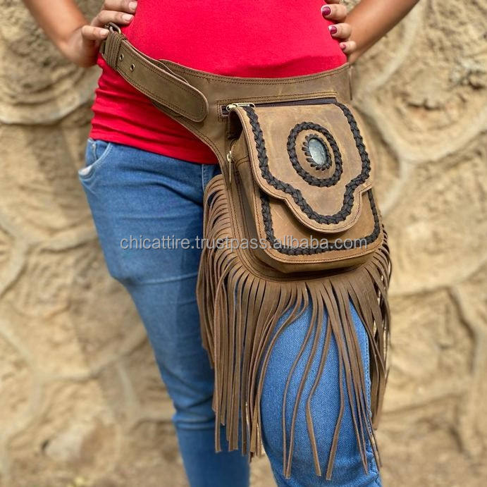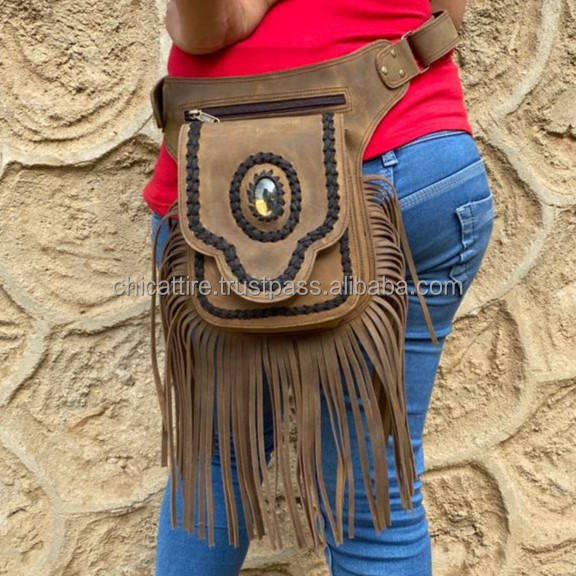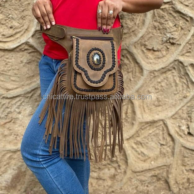 100% Genuine Leather Women Fanny Pack Boho Bum Bag with Fringe Vintage Style High Quality Cowboy Hip Bag Leather Belts