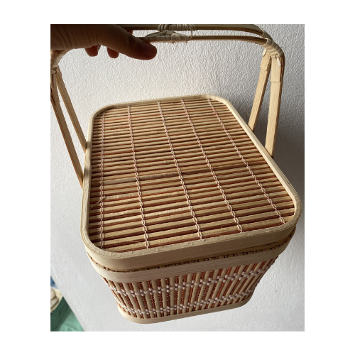 100% Hand Woven Natural Bamboo Basket Box for Picnic or Decor Set with Handle and Lid for Food Storage Bamboo Gift Baskets