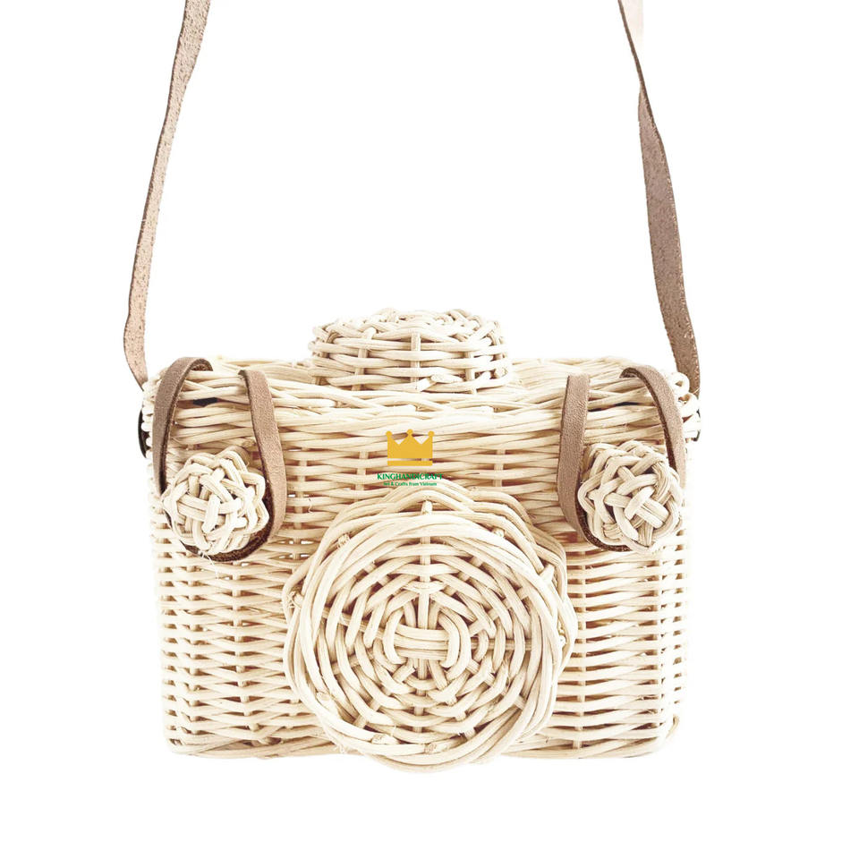 100% Handcrafted Rattan Camera Bag for Kids Mini Vintage Style with Unisex Cartoon Pattern for All Seasons