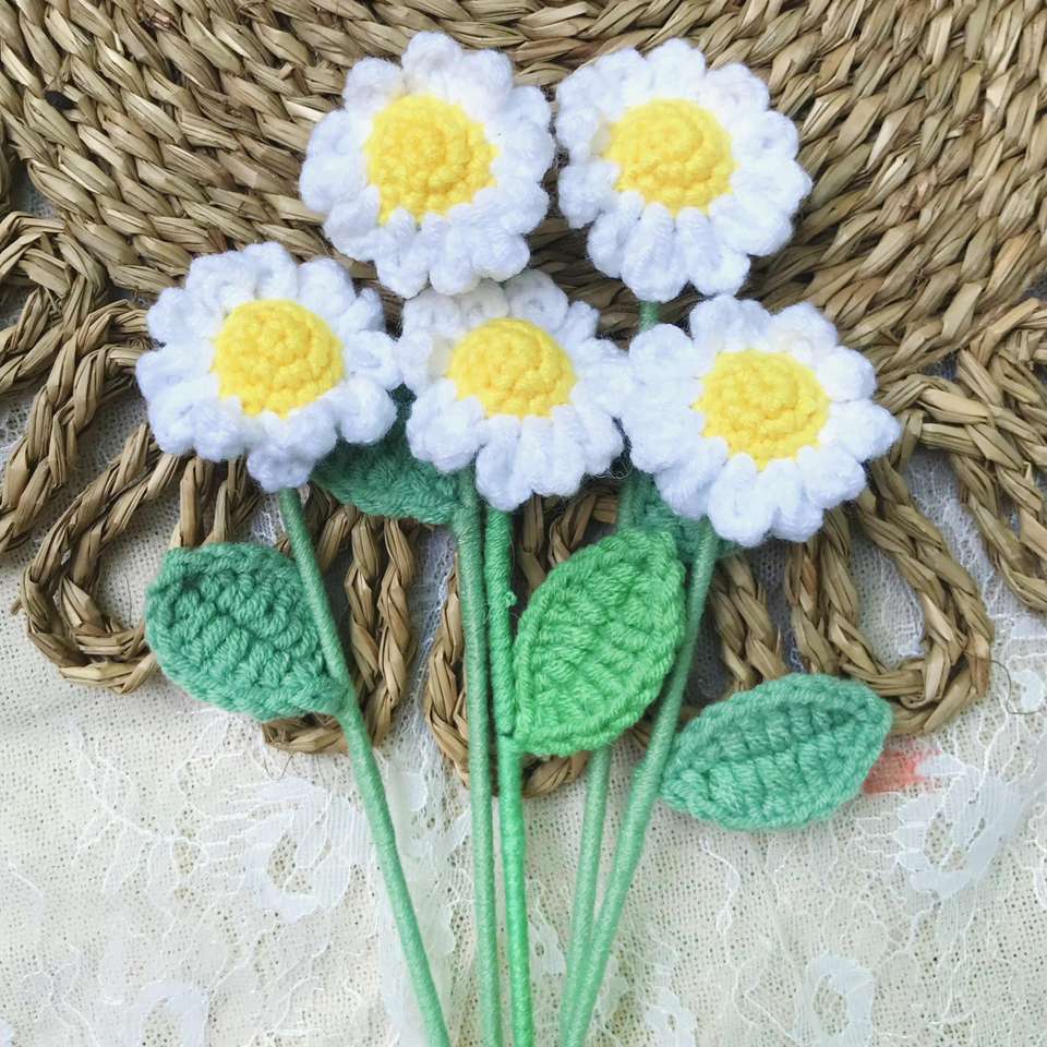 Handmade 100% Wool Crochet Artificial Flowers Bouquet Eco-Friendly Customized Color Women Great Valentines Wedding Home Decor