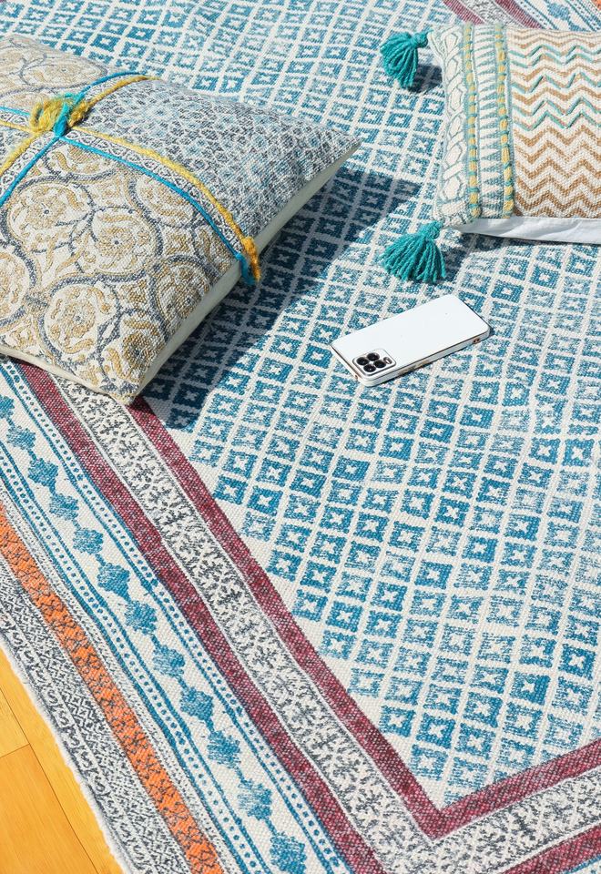 100% Handmade Rajasthani Print Designer Carpets Embroidered Dhurries Rugs for Home Living Room Garden Decor Washable Rugs