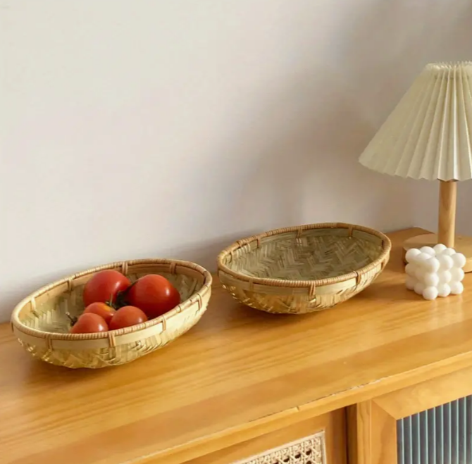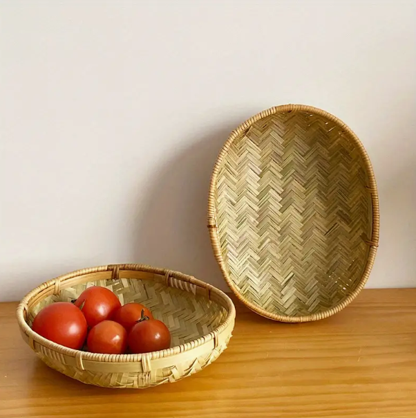 100% Handwoven Bamboo Oval Basket Rustic Home Decor for Minimal Storage of Vegetables Fruits Bakery Items-Box Packed