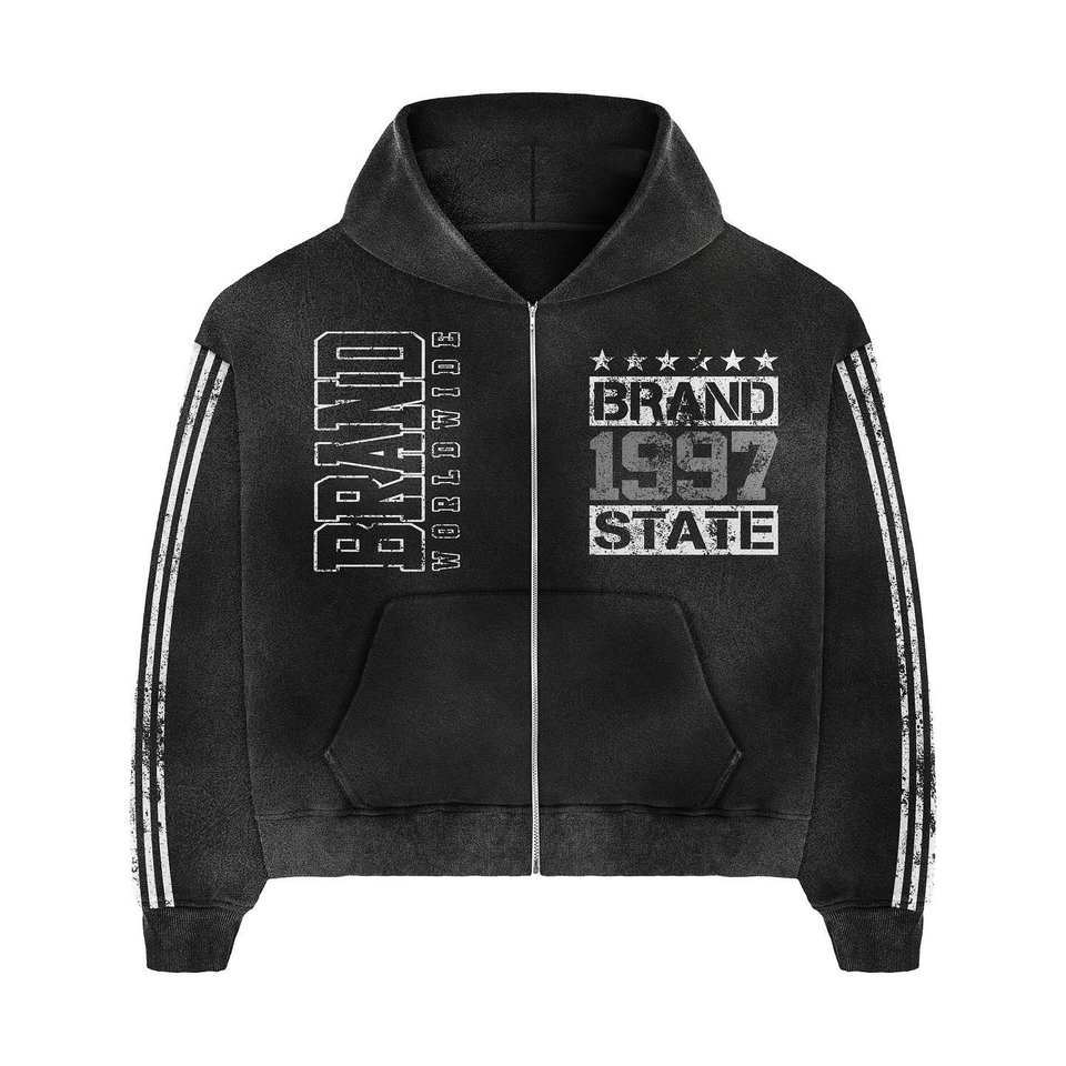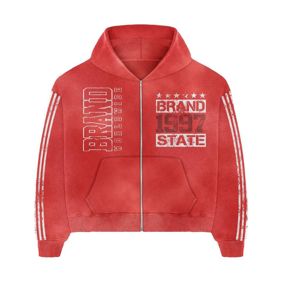 100% High Quality Cotton Material Red Color DTF Printing Zipper Closure Two Piece Sets Hoodie & Flare Trouser Jogger Sets