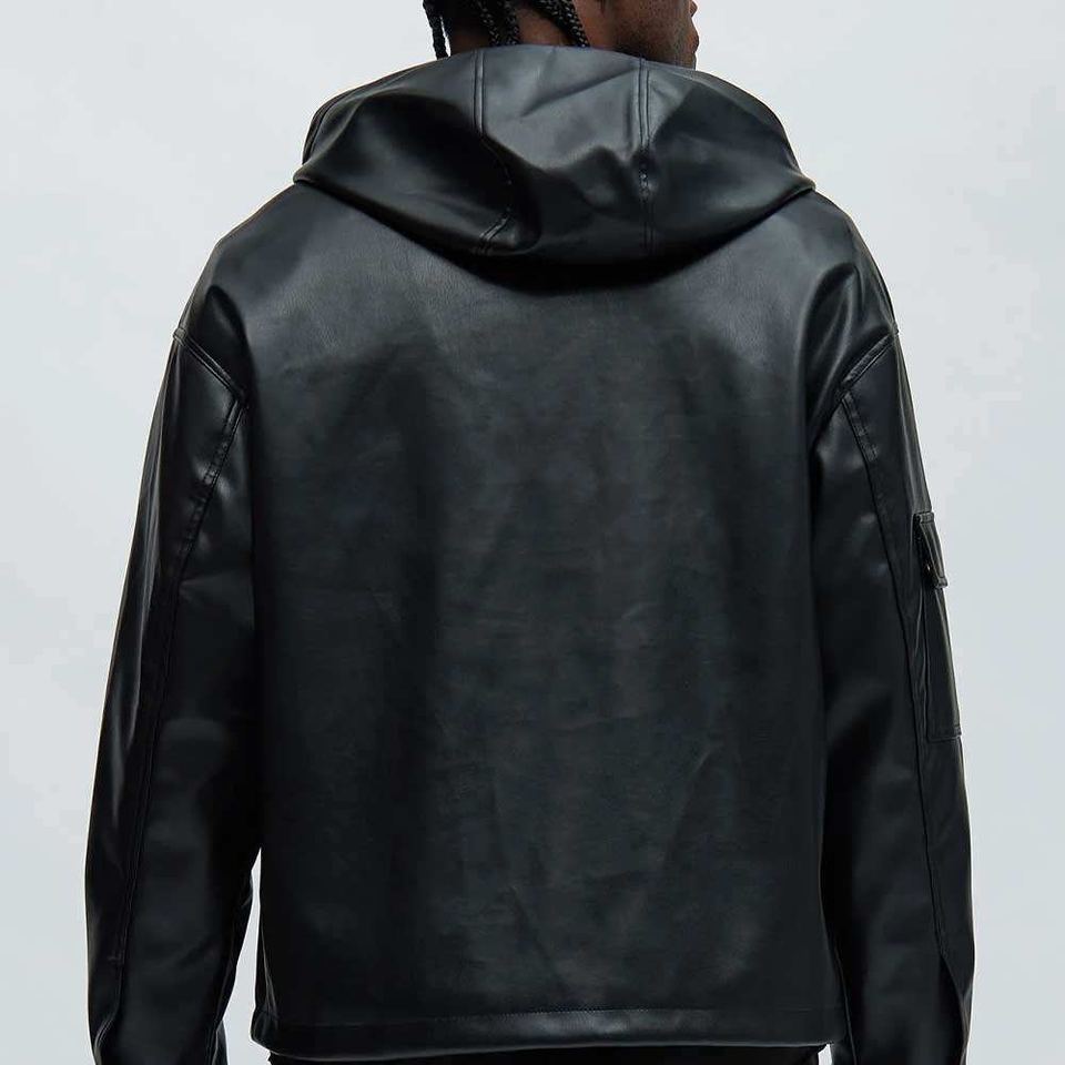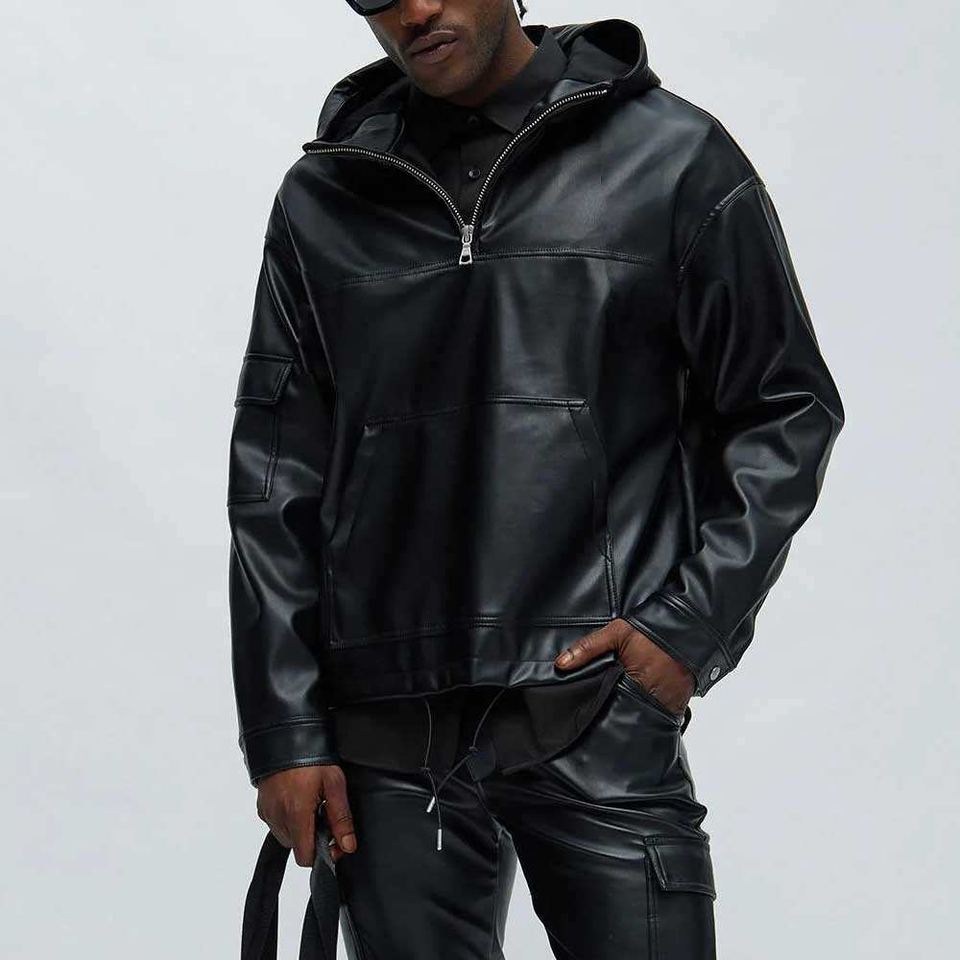 100% High Quality Leather Pullover Hoodie Solid Color Pattern Hooded Collar Men’s Hoodies Streetwear Winter Style For Trendy