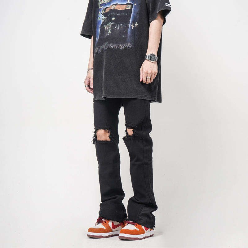 100% Cotton Breathable Summer Men's Customized Straight Jeans Light Wash Solid Color