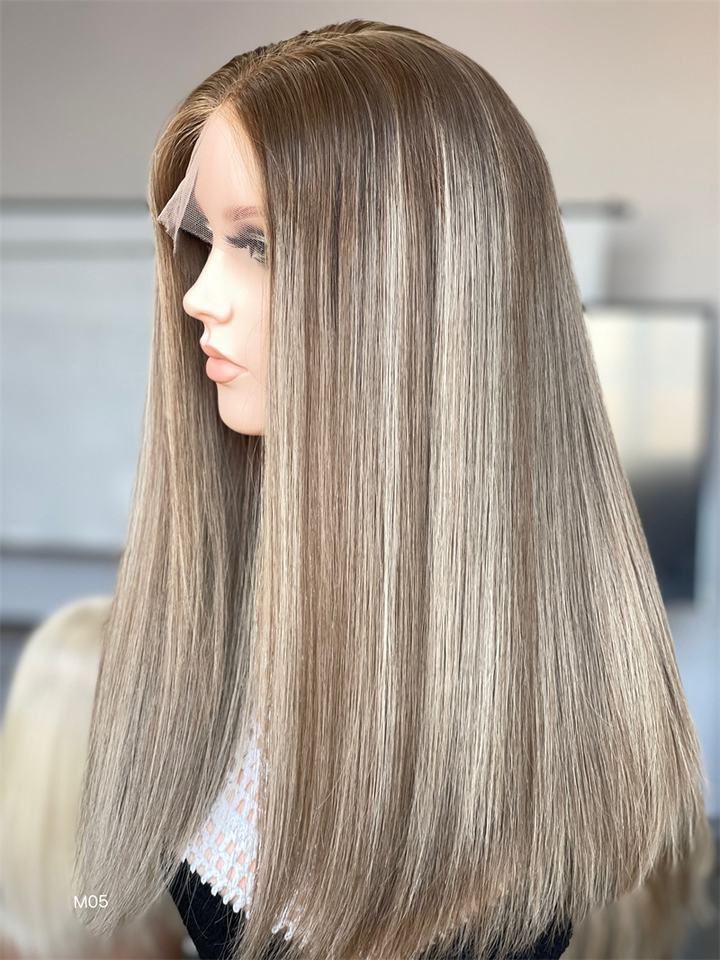 100% Human Customized Luxury European Hair HD Lace Top auburn Kosher Wig Straight Hair for White Women