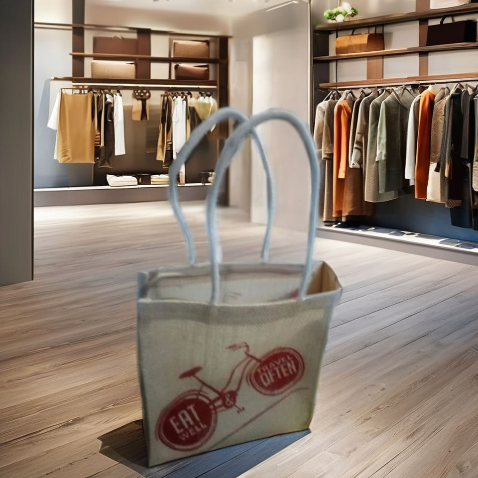 AIC Everyday Girls Eco-friendly 100% Jute Woven Fabric Shopping Bag Sturdy Rope Handle Water-Resistant Pattern Print Zipper Lock