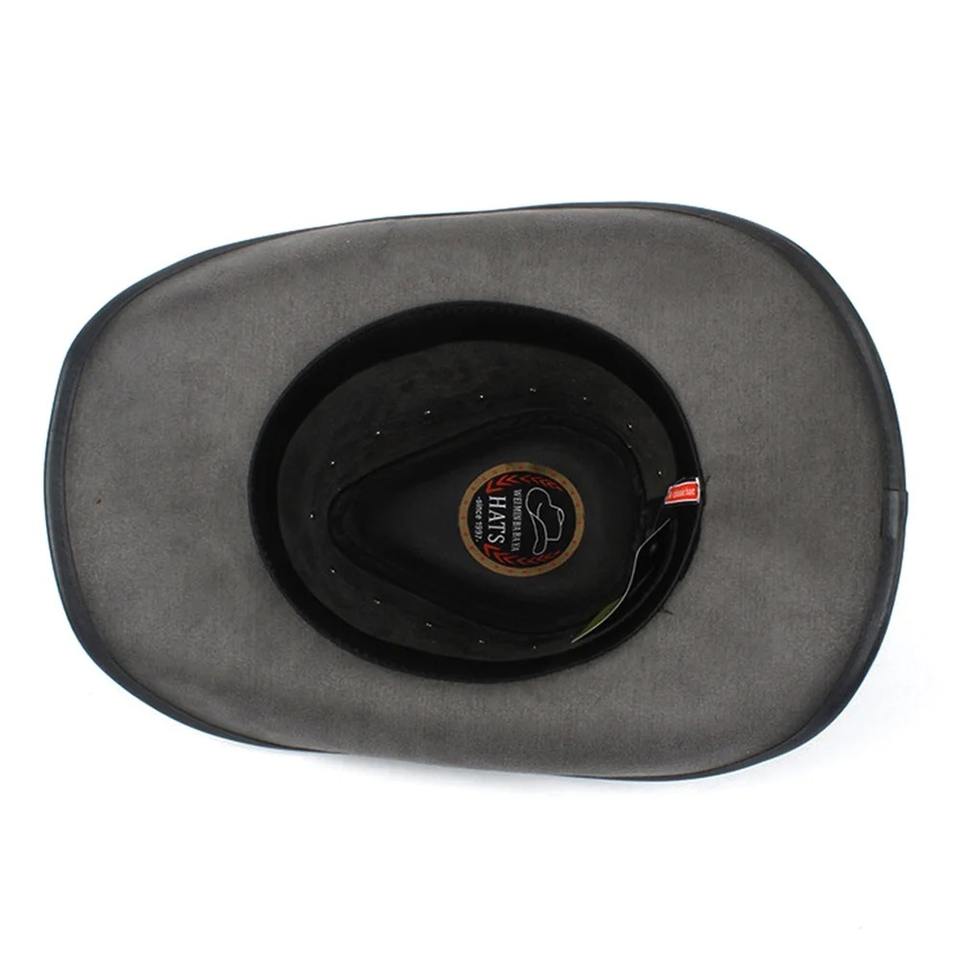 100% High Quality Leather Men's Western Cowboy Hat Size 58-59CM 36H Jazz Sombrero Hombre Caps for Gentleman Dad Casual