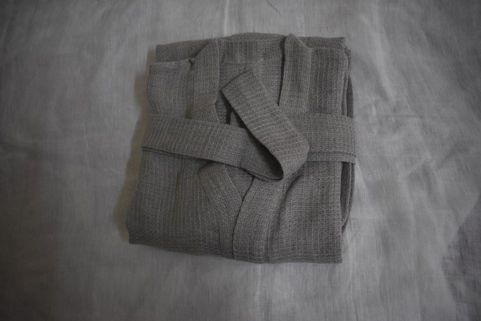 100% Linen Natural Waffle Jacquard Bathrobe Long Design Sustainable Features Adults Hotels Christmas Bath Towel Sets