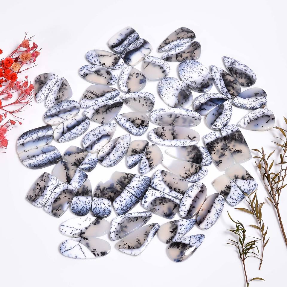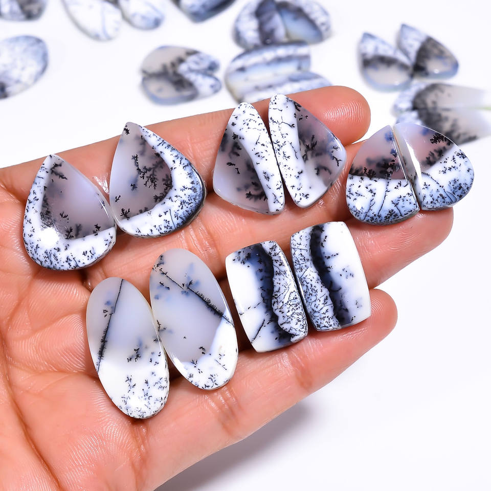100% Natural AAA Grade Quartz Dendrite Opal Pair Cabochon High Quality Wholesale Gemstone for Jewellery Making