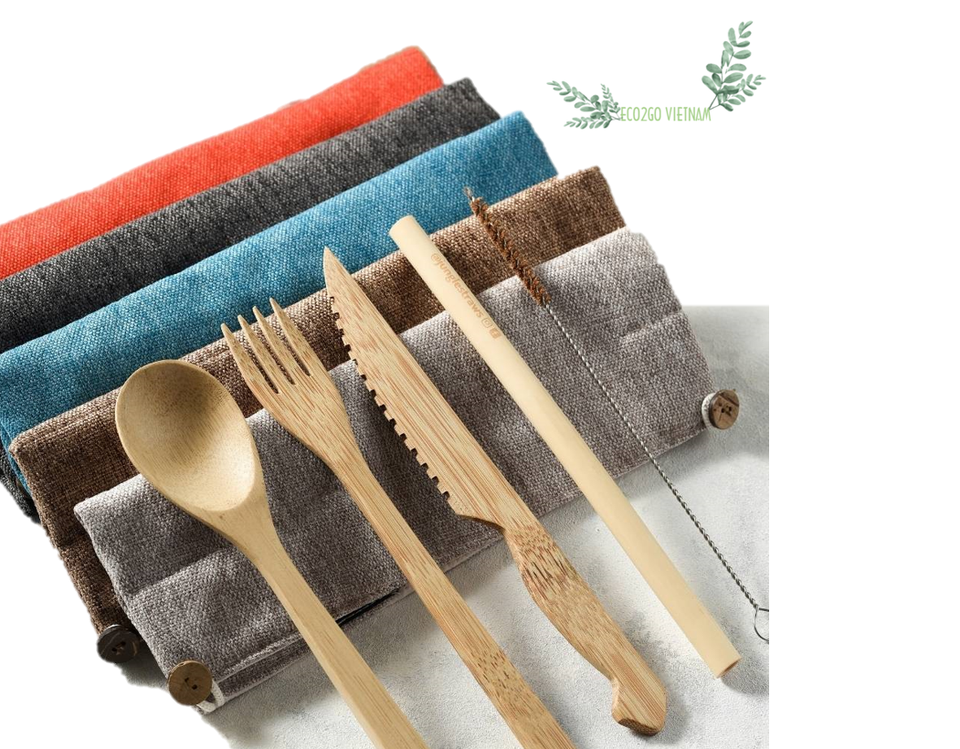 100% Natural Bamboo Travel Cutlery Set Laser Logo Made in Vietnam