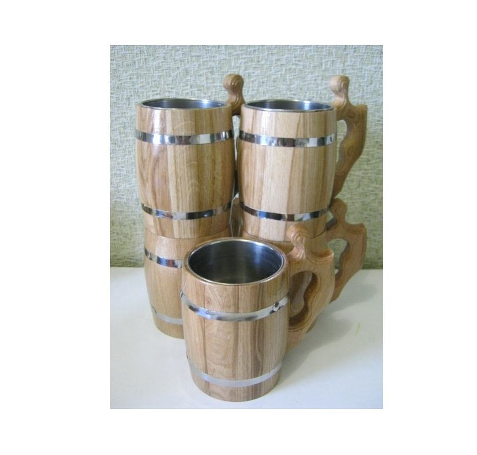 100% Natural Beer Mug Made of Wood and Steel With Iron Handle Tankard Wooden Beer Tankard Beer Mug for Home Hotel and Restaurant