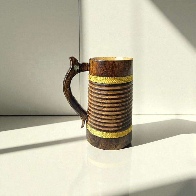 100% Natural Beer Mug Made of Wood With Wooden Handle Tankard Wooden Beer Mug Hot Selling Mugs for Home Hotel and Restaurant