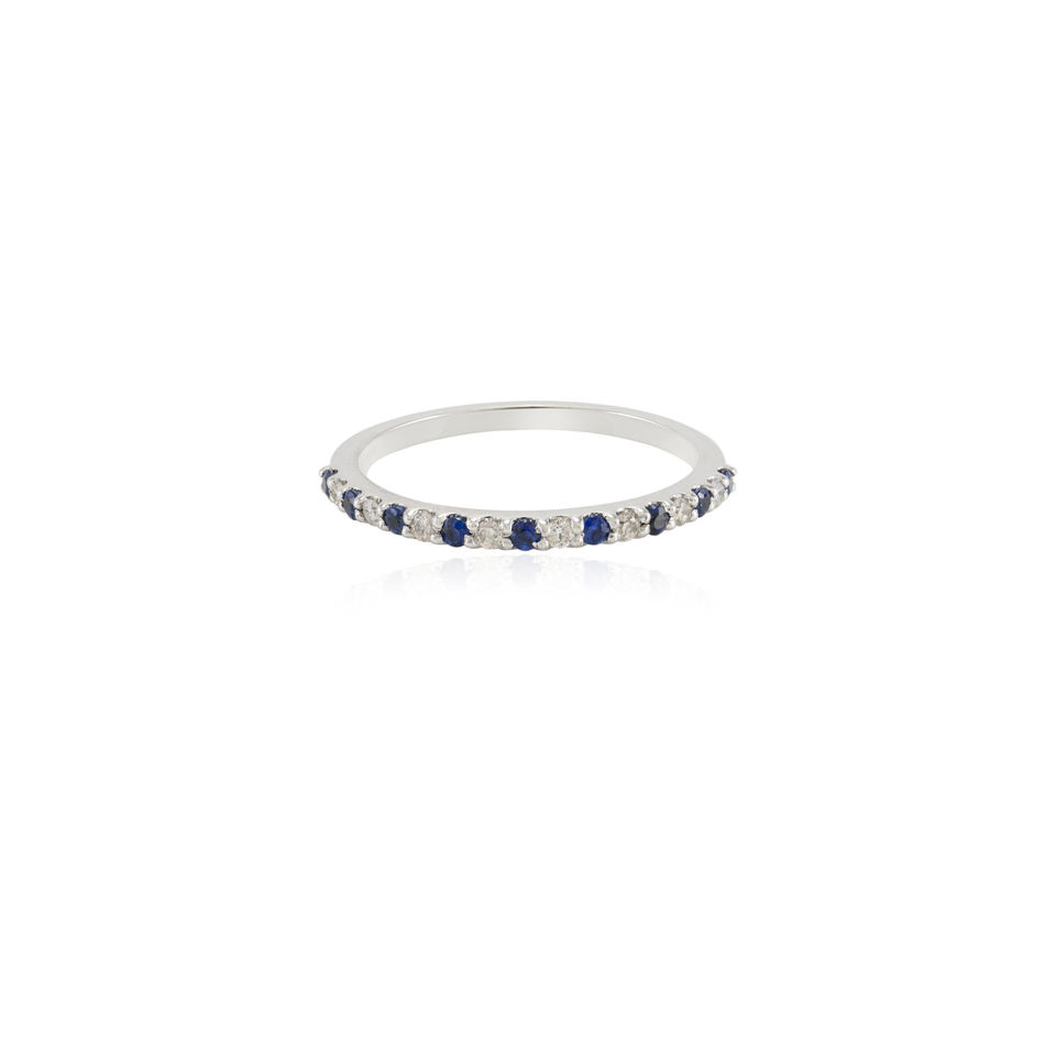 100% Natural Blue Sapphire Diamond Stack Band Ring New Design Fashion Jewelry for Women Girls 18K Solid White Gold for Weddings