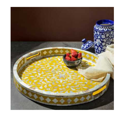 100% Natural Bone Inlay Serving Tray Hexagon Shape Breakfast Organizer Decorative Tray Wholesale Price