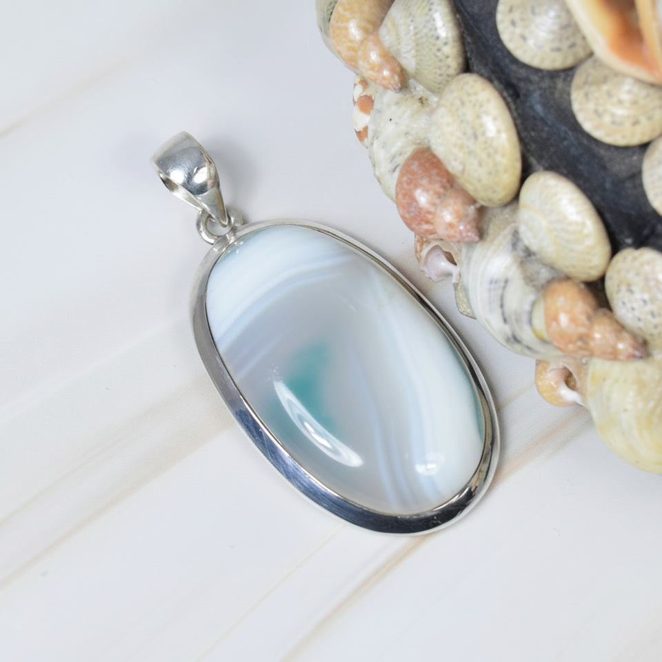 100% Natural Botswana Agate Real 925 Sterling Silver Pendant Organic Gemstone Silver Plated Bezel Setting Handmade for Everyone