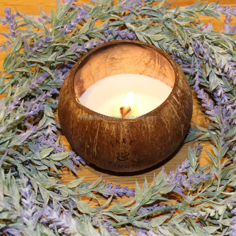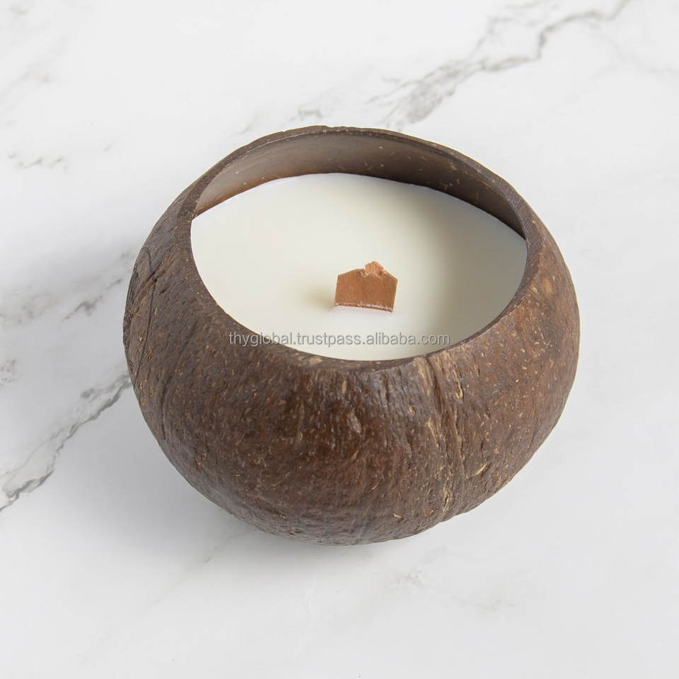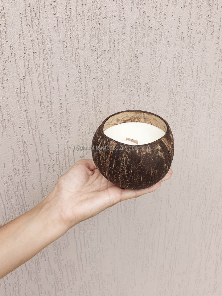 100% Natural Coconut Scented Candle in Eco-Friendly Wood and Bamboo Basket Wholesale Price Storage Style