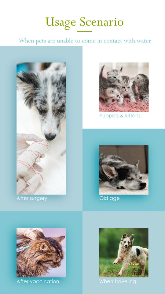 Usage:Apply shampoo powder onto fur, rub gently & brush off.