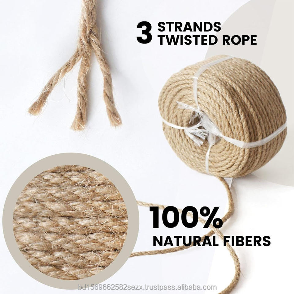 Meterial:100% Natural Eco-Friendly 4 MM 3 Strand Jute Rope