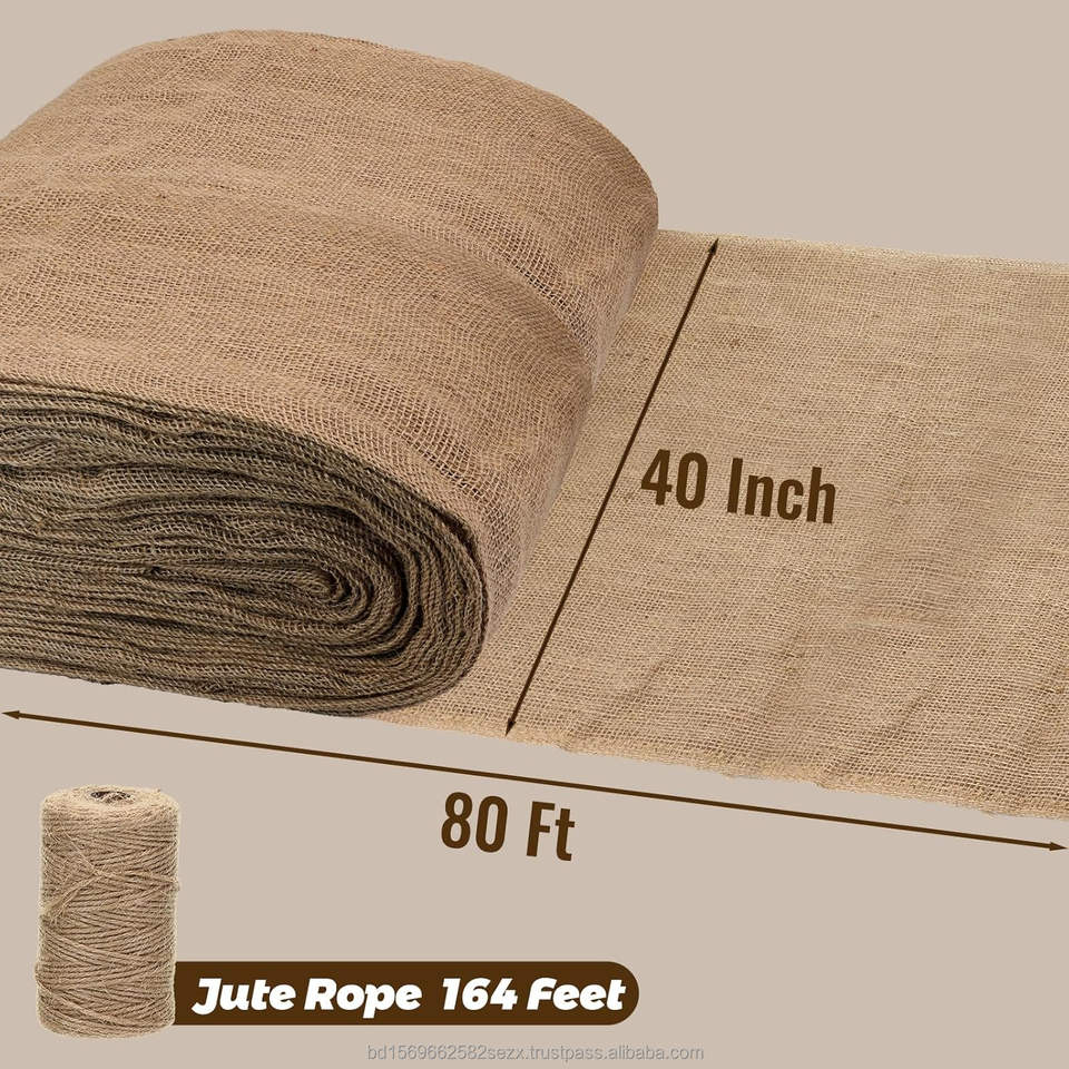 100% Natural Eco-Friendly Durable Biodegradable Jute Hessian Geotextile Fabric 260 GSM Width 40Inch X 80Ft 9oz Burlap Roll