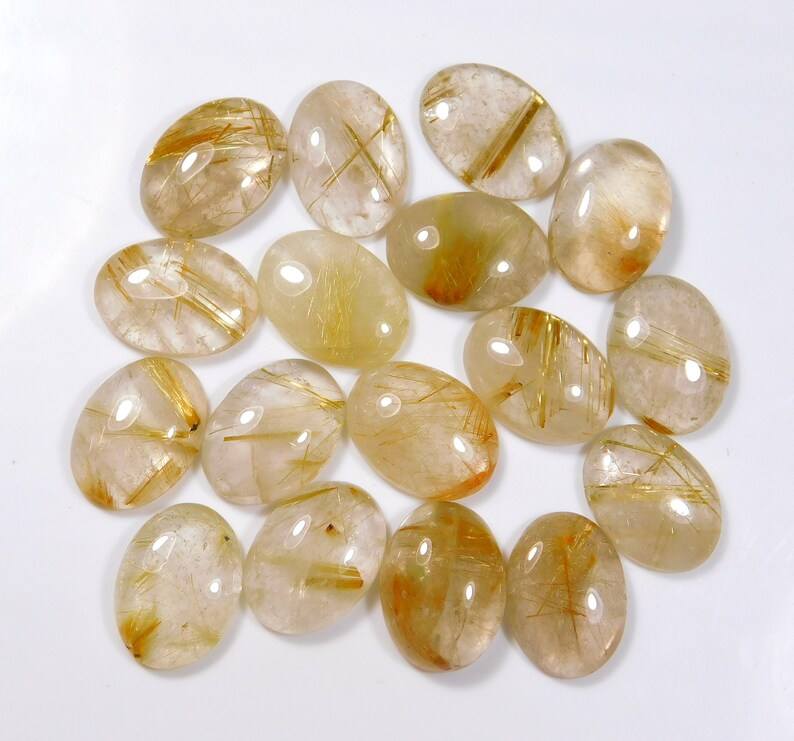 100% Natural Golden Rutile Genuine Quartz Crystal Brilliant Cut Cat's Eye Effect Smooth Polished Oval Cabochon Jewelry Making