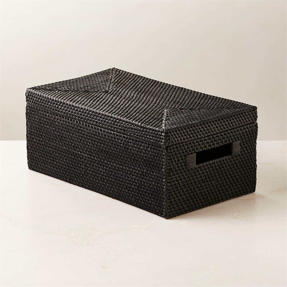 100% Natural Handwoven Rectangular Black Rattan Box for Vegetables Fruits Bakery Organiser Minimal Rustic Vintage Decor for Home