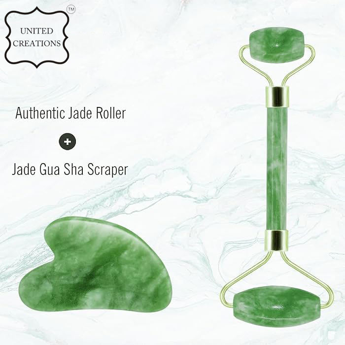 100% Natural Jade Green Face Roller and Gua Sha Jade Roller Set Gemstone Guasha for Beauty & Wellness Box Packed