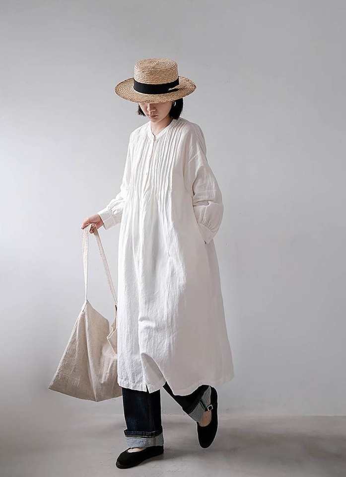 100% Natural Linen Maxi Dress Women Long Sleeve Oversized Comfortable Plus Size Relaxed Fit Robe Dress