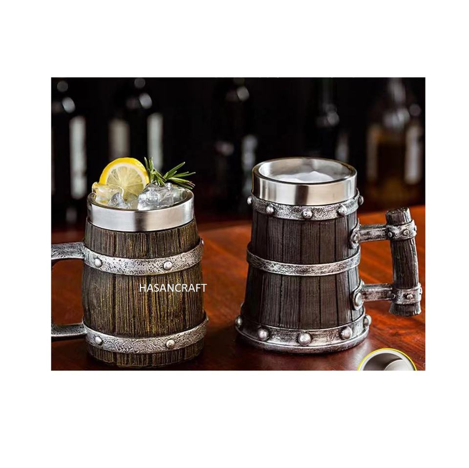 100% Natural Mango Wood and Steel Beer Mug Handcrafted Tankard Stein Cup Perfect Gift for Beer Lovers