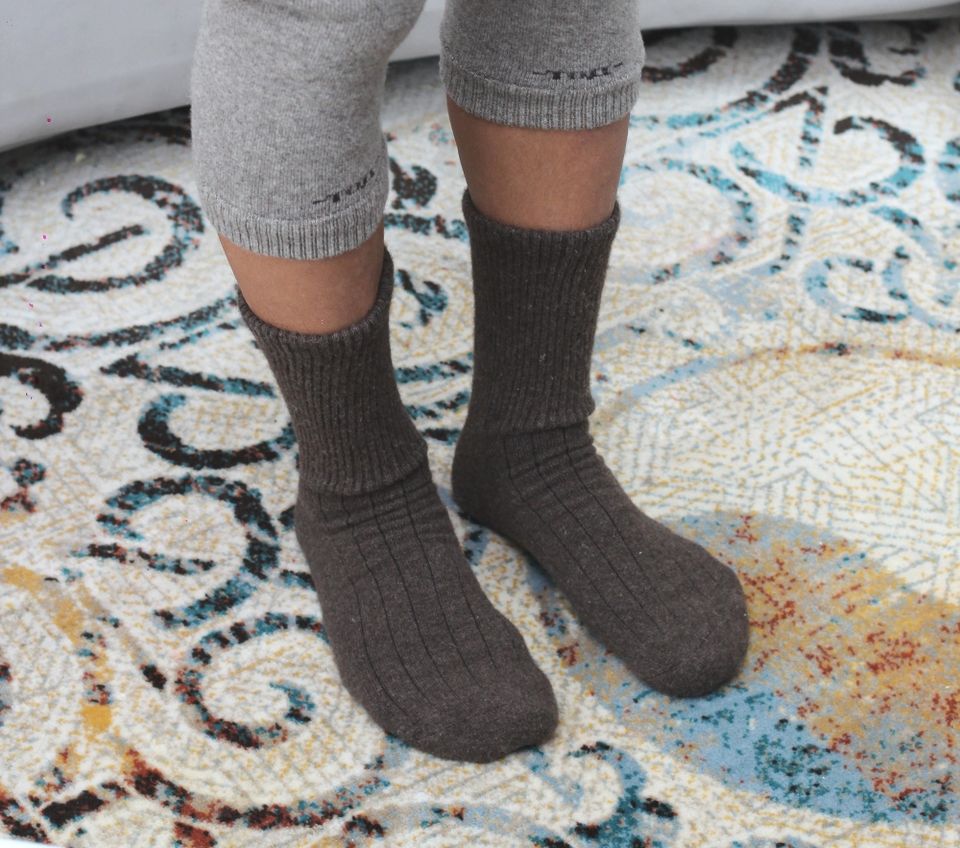 100% Natural Mongolian Wool Socks for Adults Soft Warm & Comfortable with Loose Fit Natural Brown Logo Design Style
