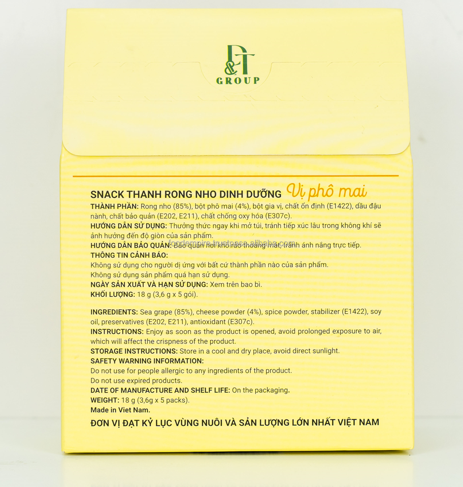 100% Natural Nutritional Sea Grape Cheese Flavored Snack Bar High Quality 18g Bag Vietnam Origin Shelf Life 1 Year Wholesale