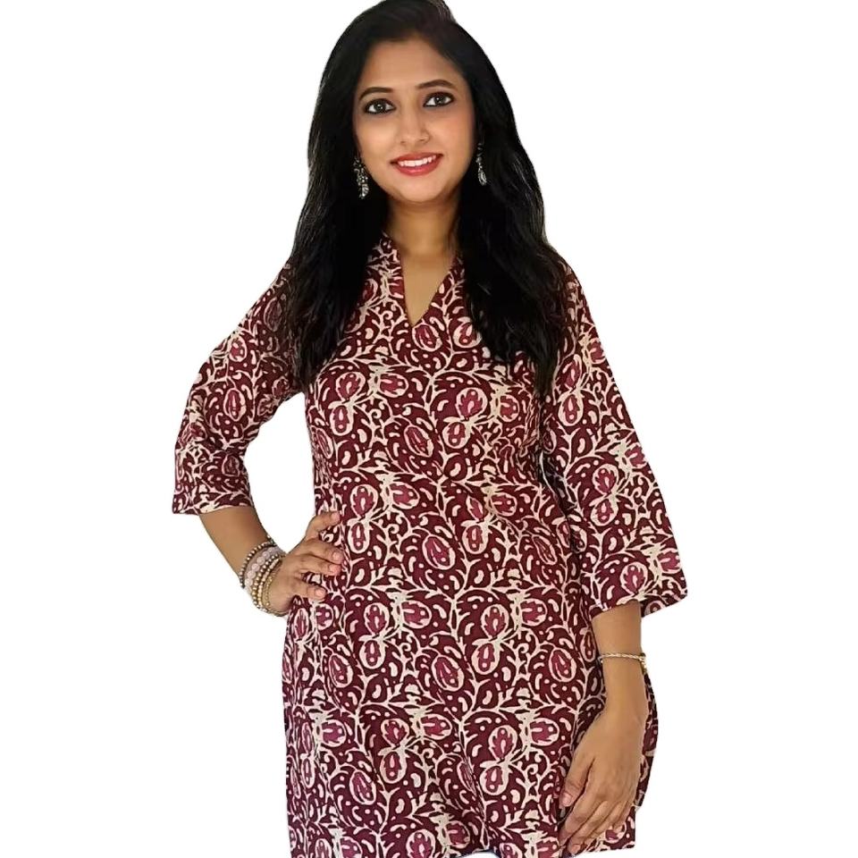 100% Natural Organic Cotton Fabric Blouse and Tunic Top Sophisticated Kurti with Collar Neck 2024 Collection