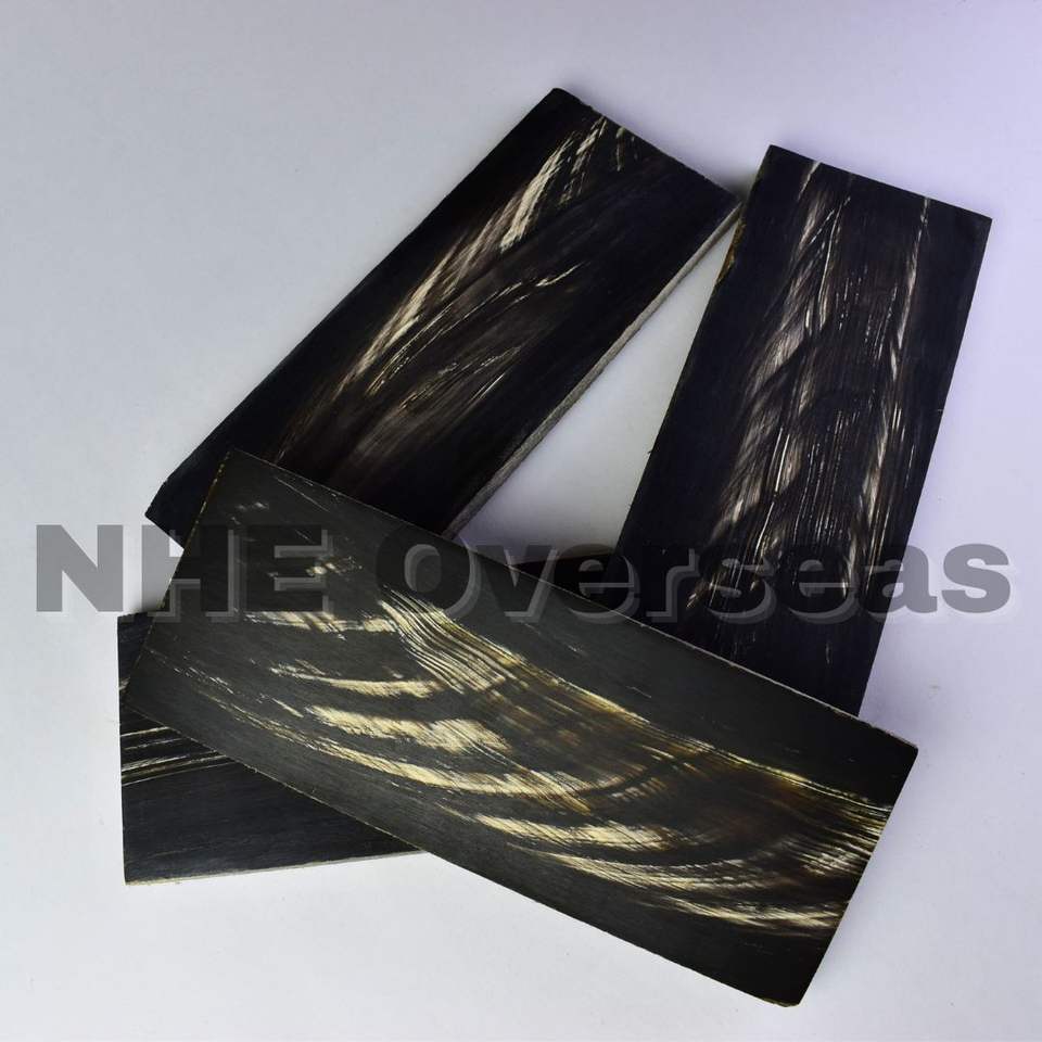 100% Natural Polished Black Buffalo Horn Plate with White Streaks Perfect for High Quality Eyewear Frame Manufacturing.