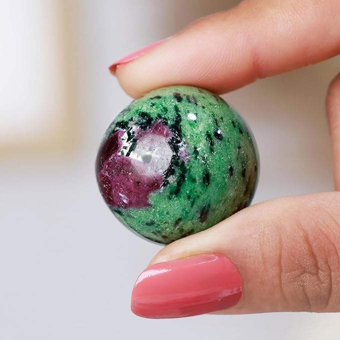 100% Natural Ruby Zoisite Gemstone Sphere Handmade for Aura Cleansing & Good Luck