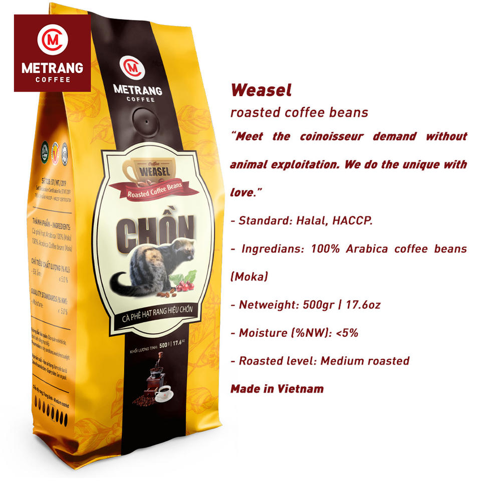 100% Natural Vietnam Roasted Arabica (Mocha) Coffee Beans Medium Roast Box Ground 0.5 Kg/Bulk Bag Sweet Taste Whole Weasel